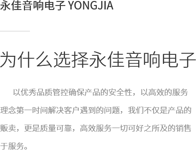拉薩永佳音響電子有限公司 拉薩永佳音響電子有限公司坐落于美麗富饒的圣城拉薩,公司前身為拉薩昊成音響電子銷售有限公司,注冊(cè)資金為300萬(wàn)元,成立于2010年3月公司地址位于西藏拉薩市貢布塘南側(cè)1號(hào)薩博廣場(chǎng)4-5、4-8號(hào)。拉薩永佳音響電子有限公司主營(yíng)專業(yè)舞臺(tái)音響設(shè)備、會(huì)議音響系統(tǒng)設(shè)備、公共廣播音響系統(tǒng)設(shè)備、網(wǎng)絡(luò)及監(jiān)控設(shè)備、多媒體教學(xué)設(shè)備、多媒體投影機(jī)、幕布、弱電線材、辦公設(shè)備、LED液晶顯示屏品種齊全、服務(wù)效率、拉薩